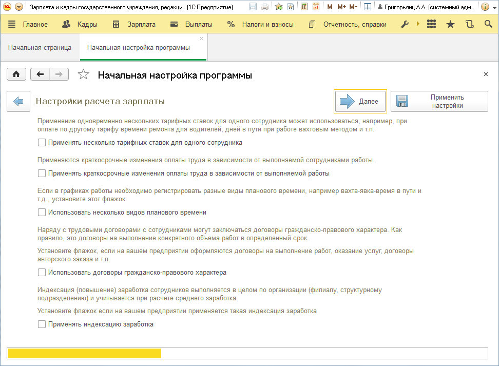 Последовательно ответив на вопросы помощника начальной настройки, вы получите интерфейс, в котором будут только нужные вам функции. В дальнейшем, в процессе работы, вы сможете без проблем задействовать не востребованные ранее возможности. Помимо функционала, характерного для всех типов учреждений, в программе реализован специфический функционал, характерный: