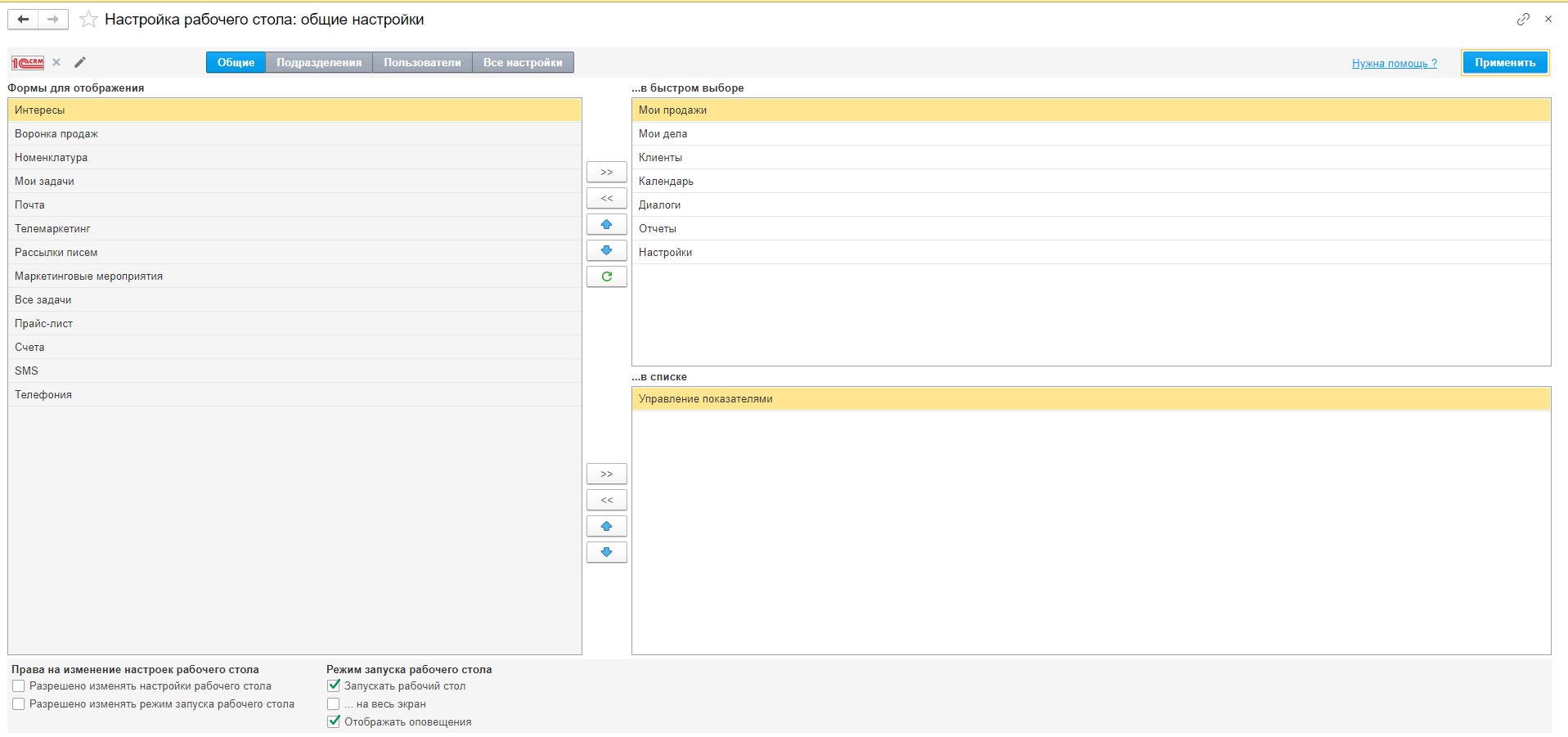 - Использование подсистемы показателей (виджетов) для оценки работы менеджеров и установки целей