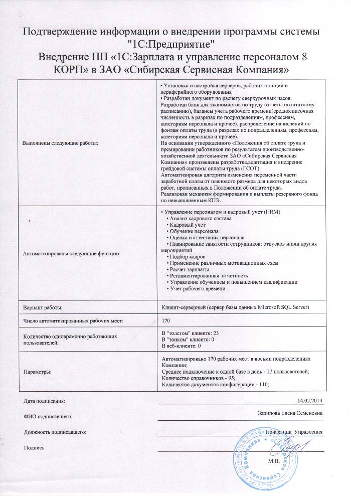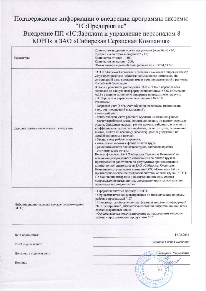 В связи с решением руководства ЗАО «ССК» о переводе всех филиалов на единую платформу специалистами ООО «Компания А&Б» успешно выполнено внедрение программного продукта «1С:Зарплата и управление персоналом 8 КОРП».